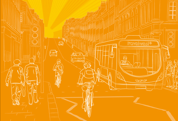 ViewA wrap-around illustration for a printed folder which contained local transport information.